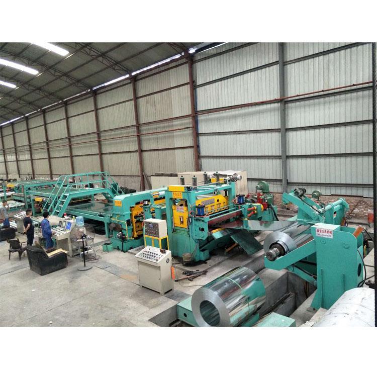 当开平机生产线工作时,导料机构处于送料状态,整平后,通过中间输送、纠偏、定位进入定径装置,按照设定的尺寸准确送料至剪板机。当达到设定尺寸时,停止进料,信号传输到剪板机,剪板机切断板材,并将切割好的金属板掉落在液压升降平台上。升降平台由电控系统控制。当切纸数量达到时,生线自动停止,由手动控制台控制。成品板输出送包装工序,生产线可以进入下一个工作周期。